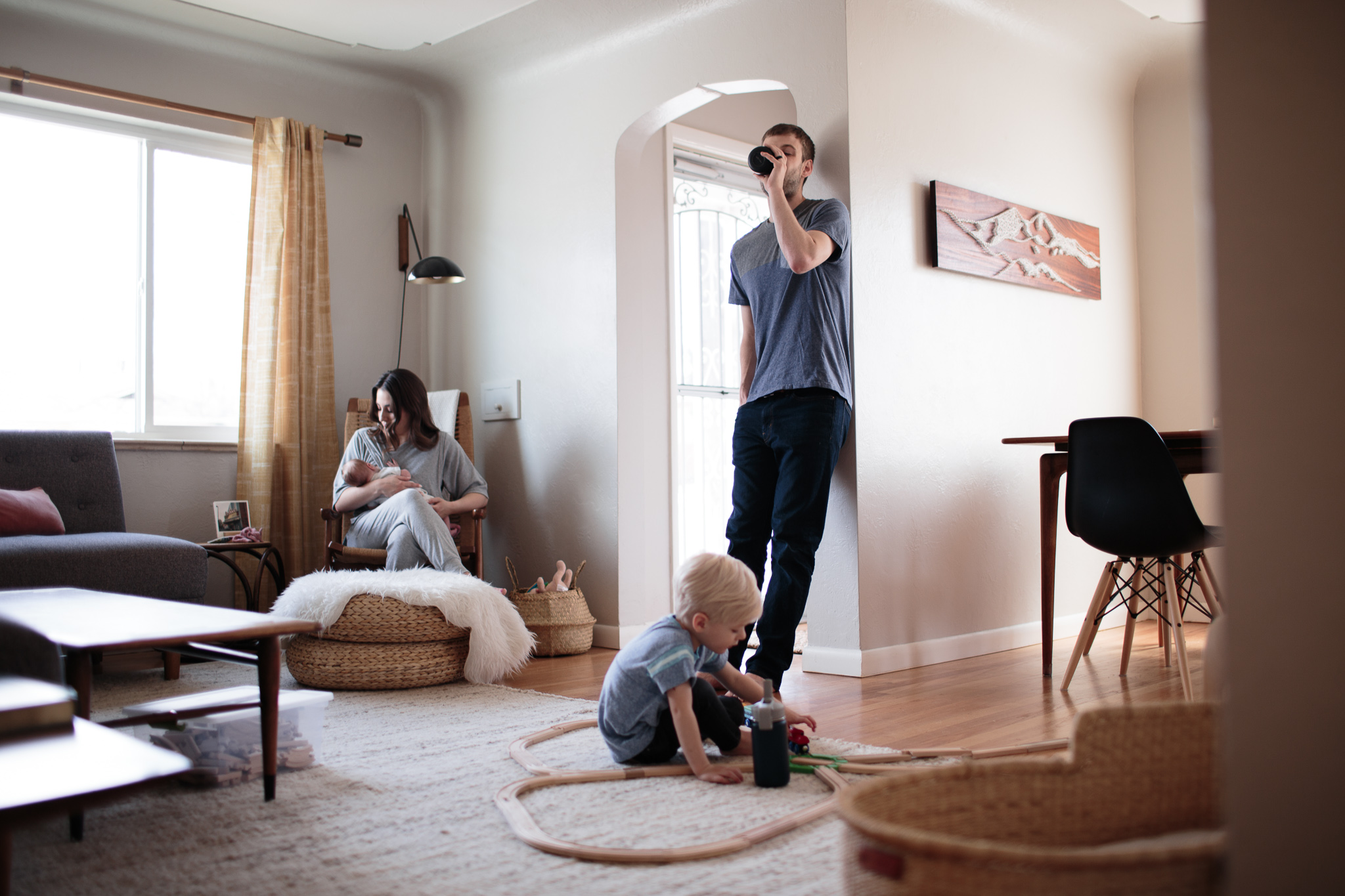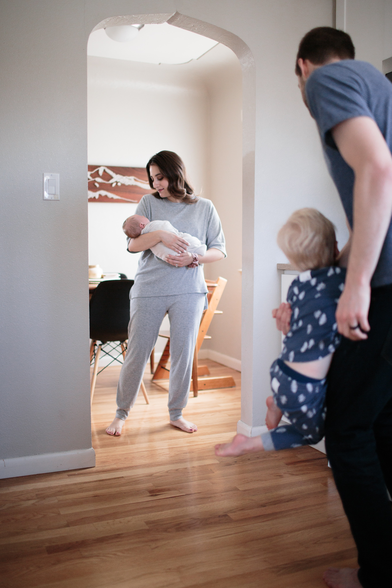 How it works: You get to carry on business as usual: feedings, sleepy snuggles, diaper changes, shell-shocked siblings – whatever the hum of your new life.